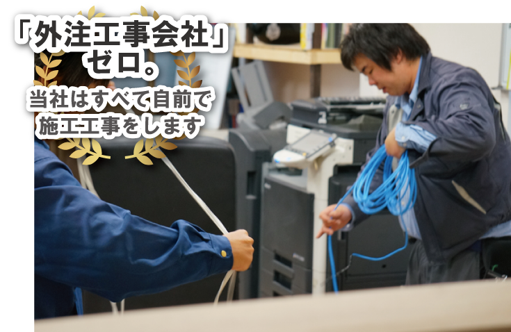 私たちはビジネスホンに関わる全ての工事を「当社の従業員」にて施工しております。 外注工事会社に任せる事はございません。